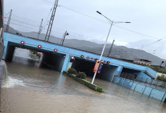 經(jīng)過(guò)現(xiàn)場(chǎng)察看,由于短時(shí)間降雨量太大,龍津河水位暴漲高于通道出口頂標(biāo)高,河水倒灌至下穿通道導(dǎo)致交通中斷,下穿通道水泵房三臺(tái)水泵全部啟動(dòng)抽水也無(wú)法滿(mǎn)足排水要求。公司防汛小組到達(dá)現(xiàn)場(chǎng)后,連夜組織人員拉好警戒線(xiàn),設(shè)置警示標(biāo)志,防止車(chē)輛進(jìn)入下穿通道,并調(diào)度4輛應(yīng)急車(chē)輛及時(shí)排水并清洗路面;同時(shí),提前與鐵路部門(mén)、交警部門(mén)聯(lián)系,暫時(shí)封閉該段線(xiàn)路。經(jīng)過(guò)6小時(shí)的不斷抽水,路面已基本暢通,搶險(xiǎn)過(guò)程未發(fā)生任何險(xiǎn)情和人員傷亡。