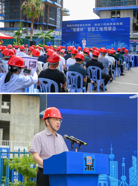 為推動(dòng)我市房屋市政工程智慧工地建設(shè),促進(jìn)建筑施工企業(yè)質(zhì)量安全管理標(biāo)準(zhǔn)化、信息化、智能化發(fā)展,7月20號(hào)上午,由市住建局和城發(fā)集團(tuán)主辦,市政集團(tuán)及福建九鼎集團(tuán)共同承辦的全市智慧工地觀摩會(huì)在龍欣小區(qū)安置房二期Ⅱ標(biāo)段項(xiàng)目舉辦,市住建局二級(jí)調(diào)研員王健蒞臨觀摩會(huì)致辭,市住建局、城發(fā)集團(tuán)及所屬企業(yè)相關(guān)工程技術(shù)人員約100人參加。觀摩會(huì)還吸引了來自龍巖市建筑業(yè)協(xié)會(huì)、龍巖市工程建設(shè)質(zhì)量安全管理協(xié)會(huì)、福建船政交通職業(yè)學(xué)院等有關(guān)專家到場指導(dǎo)。